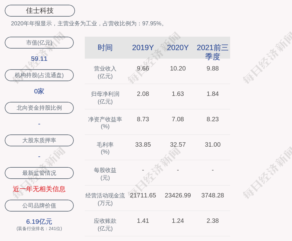 2020年年报显示,佳士科技的主营业务为工业,占营收比例为:97.95%。