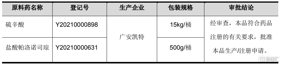 格隆汇6月25日丨福安药业(300194.SZ)公布,公司全资子公司广安凯特制药有限公司(简称“广安凯特”)于近日收到国家药品监督管理局签发的化学原料药上市申请批准通知书。情况如下: