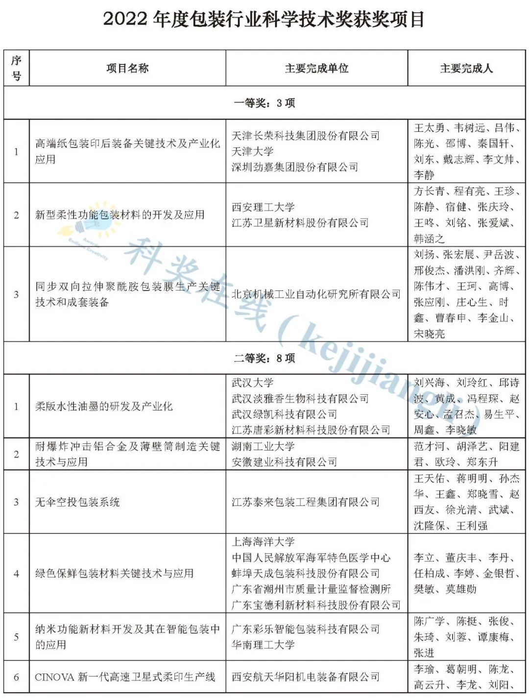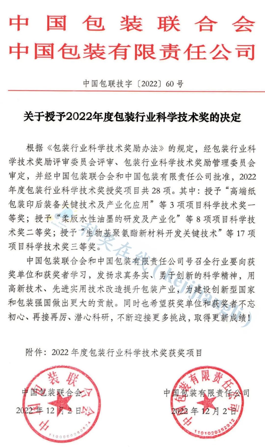 【喜讯】2022年度包装行业科技奖:长荣股份、劲嘉包装获一等奖