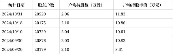 从11月4日公开信息显示,长荣股份截至2024年10月31日公司股东户数为2.05万户,较上期(2024年10月18日)增加345户,增幅为1.71%,变化不大。