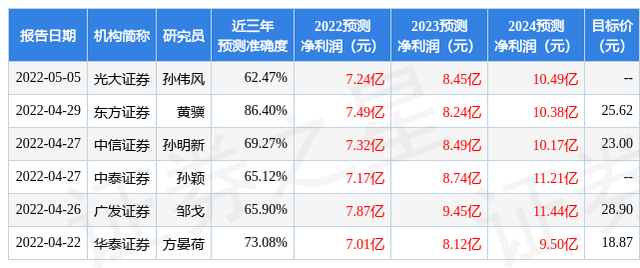 最新盈利预测明细如下:
