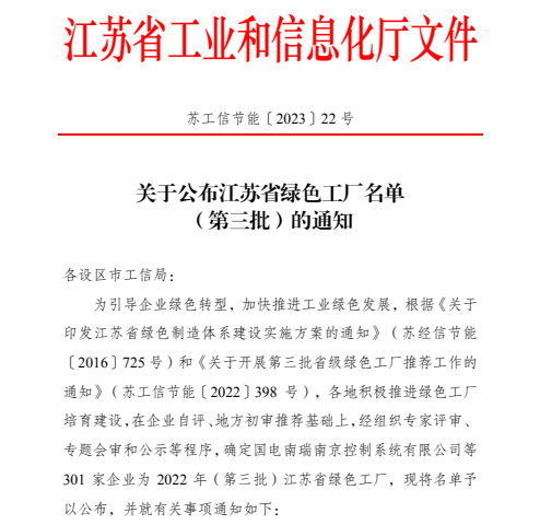 近日,江苏省工信厅公示了2022年(第三批)江苏省绿色工厂名单,遥观企业——江苏长海复合材料股份有限公司榜上有名。截至目前,遥观镇累计培育国家级绿色工厂1家、省级绿色工厂1家、市级绿色工厂2家,1家企业获评省级绿色发展领军企业。