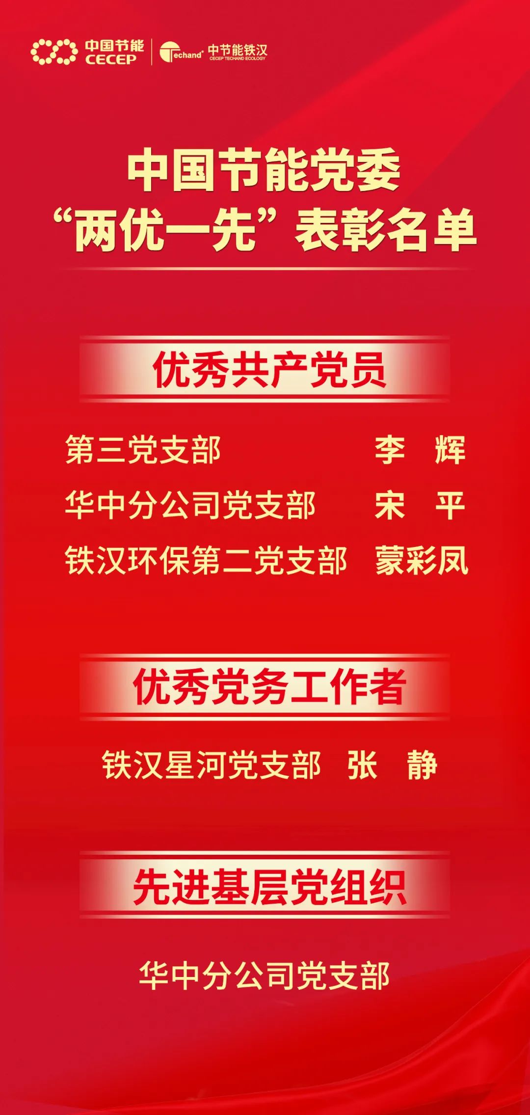 2023年7月3日,集团公司党委召开庆祝中国共产党成立102周年暨“两优一先”表彰大会。会上,中节能铁汉4人1集体获表彰。