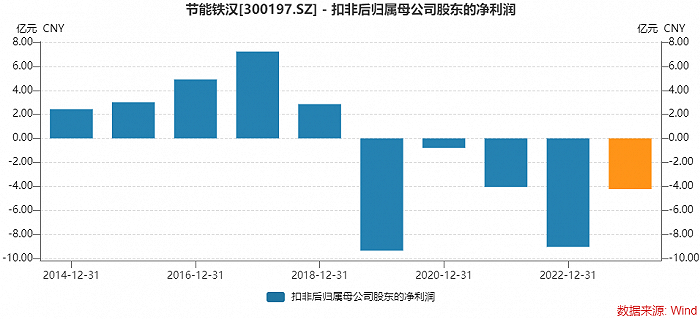 节能铁汉扣非归母净利润已是连续亏损四年,营业收入最近二年年均不足30亿元。