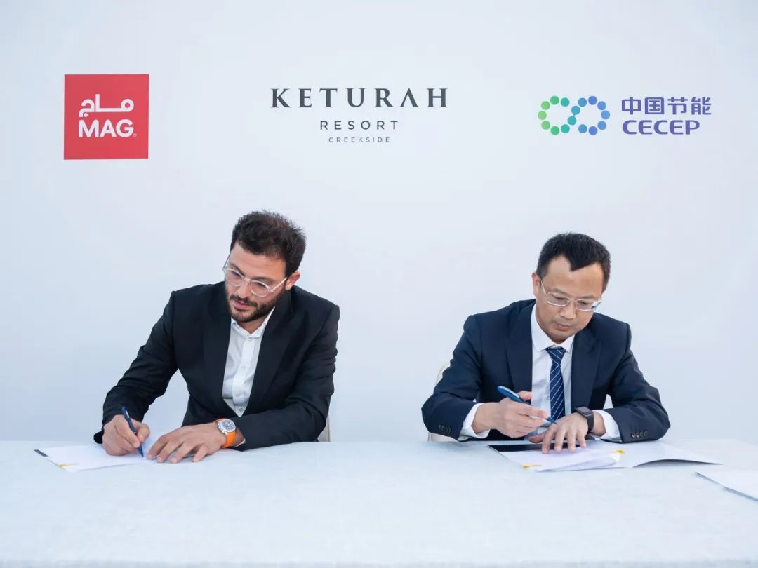 ▲ 2024年1月10日,中节能铁汉与迪拜麦格集团(MAG Group Holding)在阿拉伯联合酋长国迪拜举行云溪项目授标函签约仪式并签署促进双方进一步深化合作协议,中国节能总经理刘家强,麦格集团董事长Moafaq Ahmad Al Gaddah出席仪式并见证签约