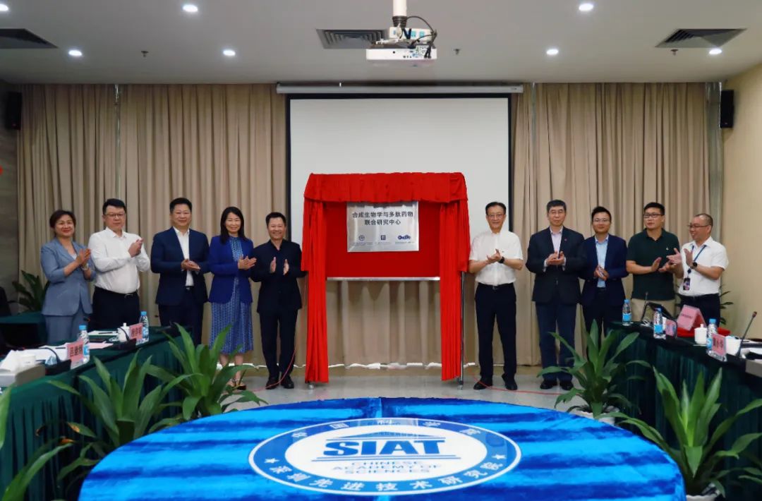 龙华区政府党组成员、副区长赵妍妍,区科技创新局局长吕继纲,国际欧亚科学院院士、深圳先进院院长、深理工筹备办主任樊建平,深理工合成生物学院名誉院长张先恩,深圳先进院发展处副处长黄小华,深圳先进院定量合成生物学研究中心副研究员陈明海与翰宇药业董事长曾少贵、副董事长曾少强、执行总裁余品香、副总裁唐洋明等共同为“合成生物学与多肽药物联合研究中心”揭牌。