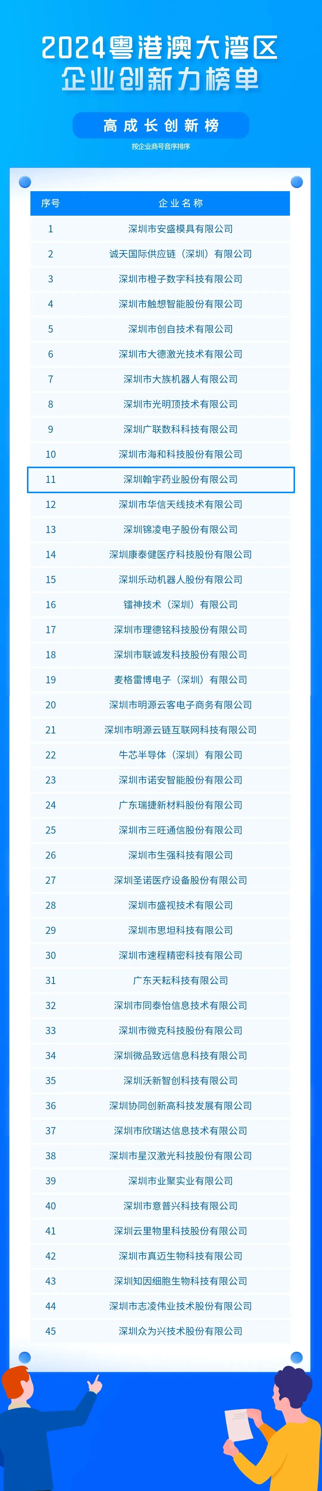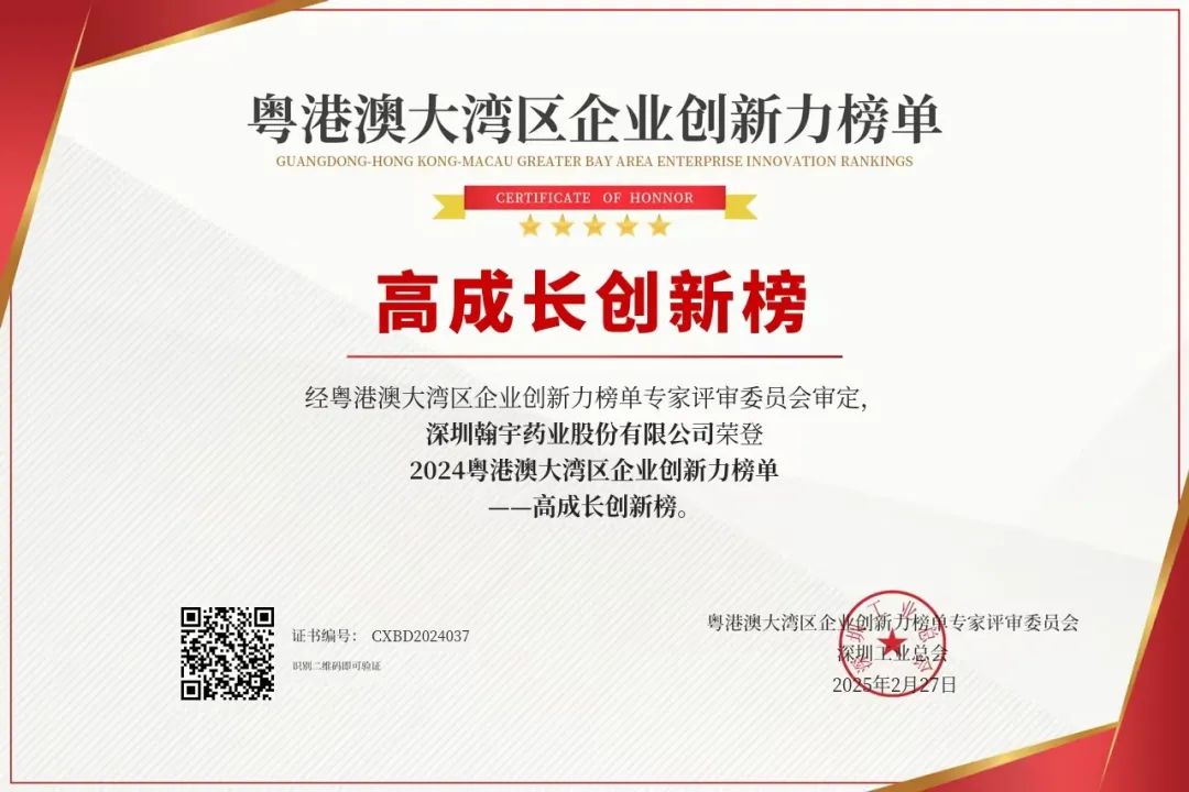 翰宇药业凭借卓越的研发、质量及生产实力与产业化成果,荣登高成长创新榜。