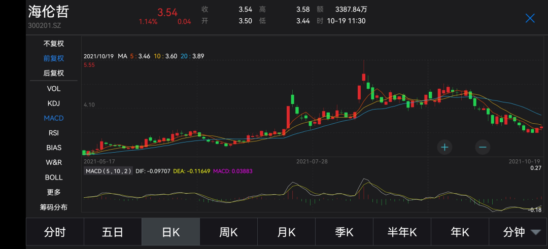 截至10月19日上午收盘,海伦哲上涨1.14%,报3.54元,总市值36.8亿元。