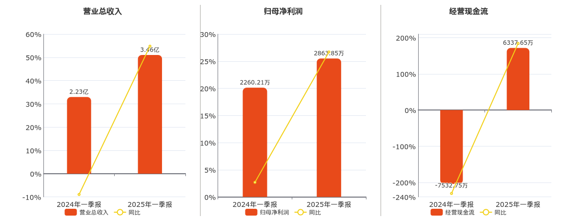 公司营业总收入为3.46亿元。归母净利润为2863.85万元。经营活动现金净流入为6337.65万元。