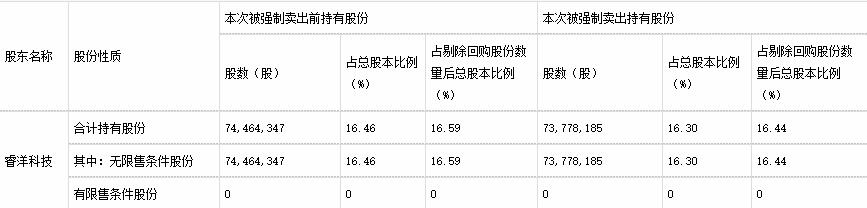 目前,睿洋科技已与债权人银行及人民法院初步协商,人民法院后续不再强制卖出与本次担保合同纠纷一案相关的剩余部分冻结股票,睿洋科技履行相关法律文书后将办理结案解冻手续。睿洋科技所持有公司的部分股份解除冻结后被强制卖出导致被动减持的具体情况如下: