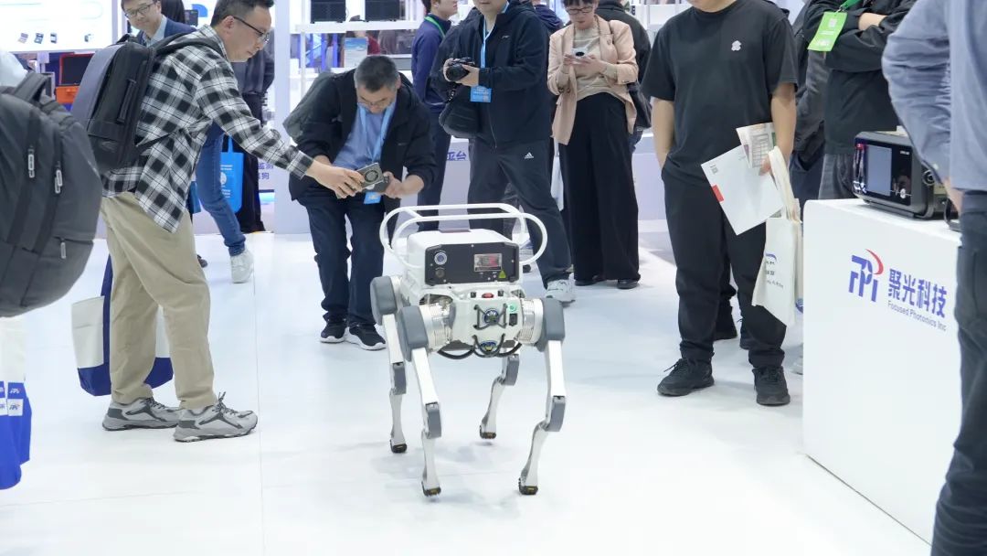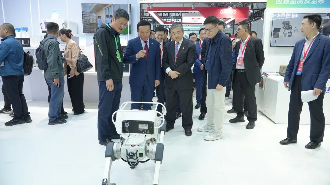 展台C位的“超感官”机器狗引发现场聚焦,嘉宾团驻足观看。这一平台搭载扫描式激光气体遥测仪、红外热成像设备等高端科学仪器,现场演示工业园区自主巡检流程,实现0.1秒锁定泄漏点、2小时完成8小时工作量,智能化实力获得高度认可。