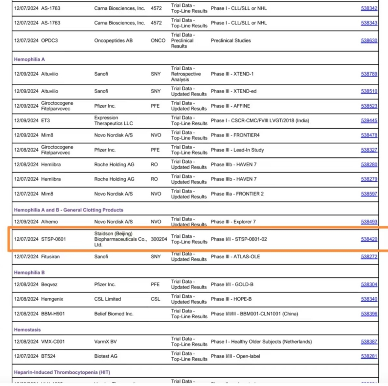 2022年09月,国家药品监督管理局批准注射用STSP-0601新增适应症开展临床试验,新增适应症为“不伴抑制物的血友病A或B患者出血按需治疗”;