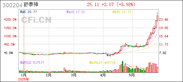 5月29日,舒泰神公告,公司股票连续十个交易日收盘价格涨幅偏离值累计超过100%,连续三十个交易日收盘价格涨幅偏离值累计超过200%,属于股票交易严重异常波动情况。