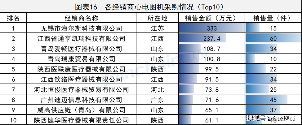 根据中标结果,2021年8月份心电图机销售额最高的经销商是无锡市海尔斯科技有限公司,金额达333.0万元。江西省通亨凯瑞科技有限公司和青岛爱畅医疗器械有限公司则以237.4万元和108.7元销售额,排名第二和第三。