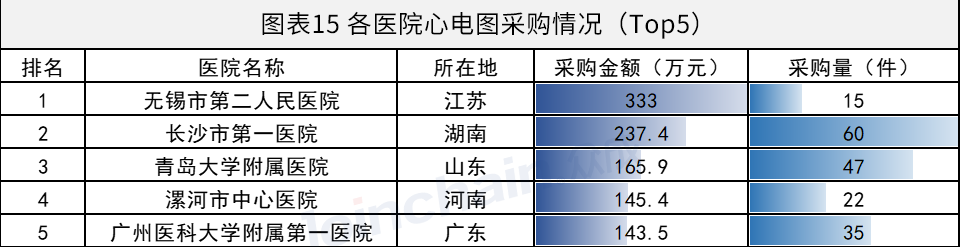 根据中标结果,2021年8月心电图机采购金额最高的医院是无锡市第二人民医院,金额达333.0万元。长沙市第一医院和长沙市第一医院分别以237.4万元和165.9万元的采购额,排名第二和第三。此外,长沙市第一医院为8月采购心电图机数量最多的单位。