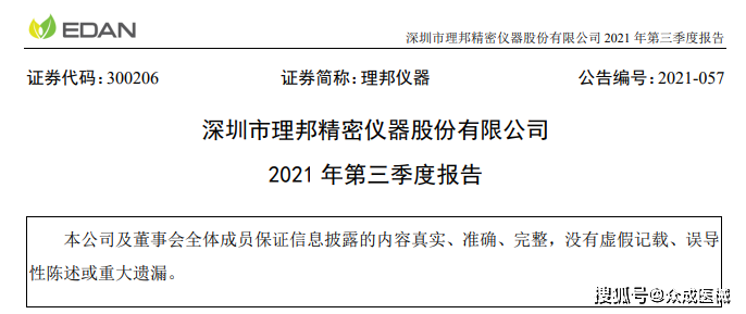 10月26日晚间,理邦仪器发布了2021年第三季度报告。