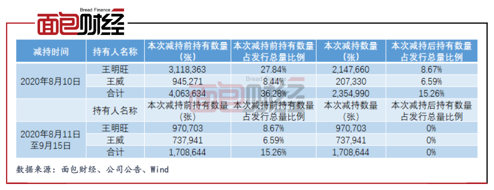 募资后控股股东套现离场的情况还出现在公司发行的可转债上。2020年,在公司发行可转债募资后的一个多月时间,控股股东王明旺及王威就在二级市场火速清仓了其认购的406.36万张可转债,合计套现约5.8亿元,实现二级市场资本利得近1.7亿元。