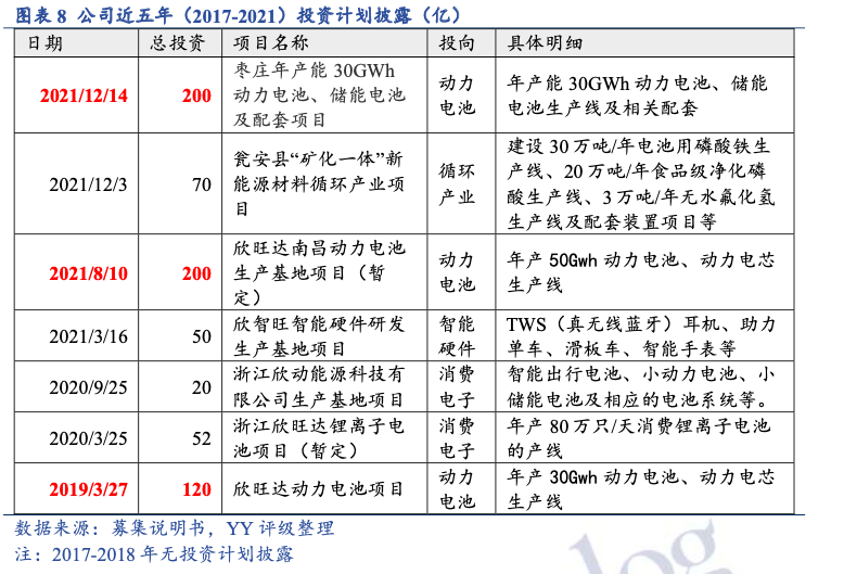 投入还在加大。据宝安日报报道,单在2021年欣旺达就宣布了多个动力电池扩产项目,总投资达450亿元。