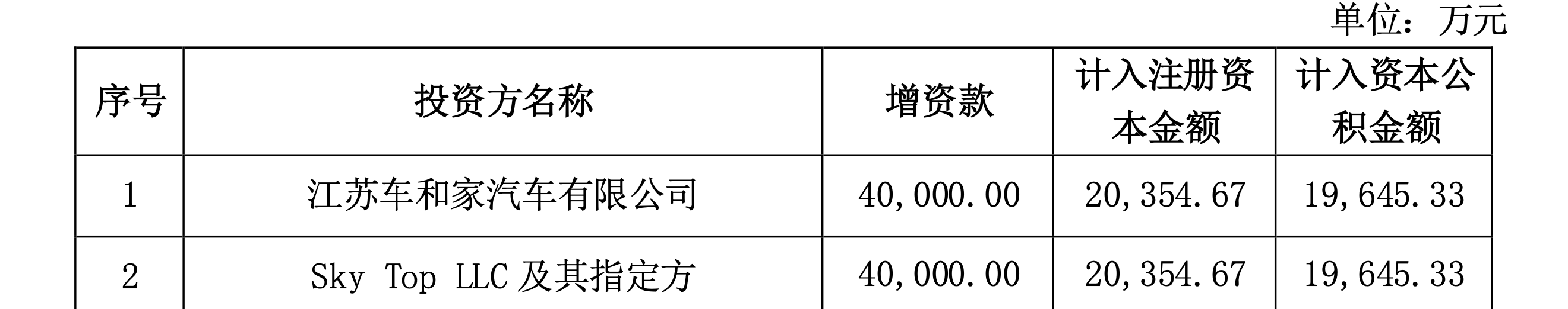 其中,江苏车和家以4亿元增资,认缴出资额为2.04亿元,持股比例为3.22%。