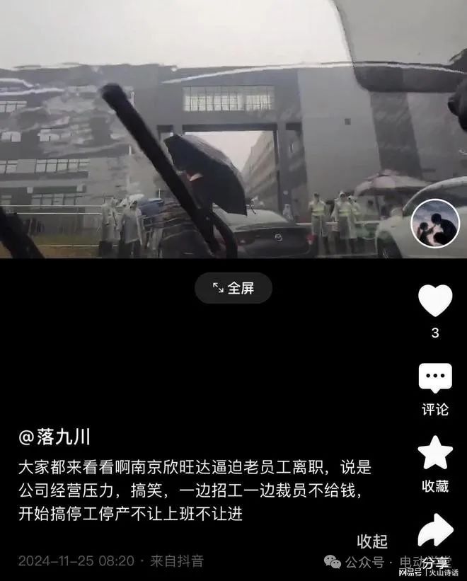 而另有网友视频爆料称,“大家都来看看啊南京欣旺达逼迫老员工离职,说是公司经营压力,搞笑,一边招工一边裁员不给钱,开始搞停工停产不让上班不让进。”
