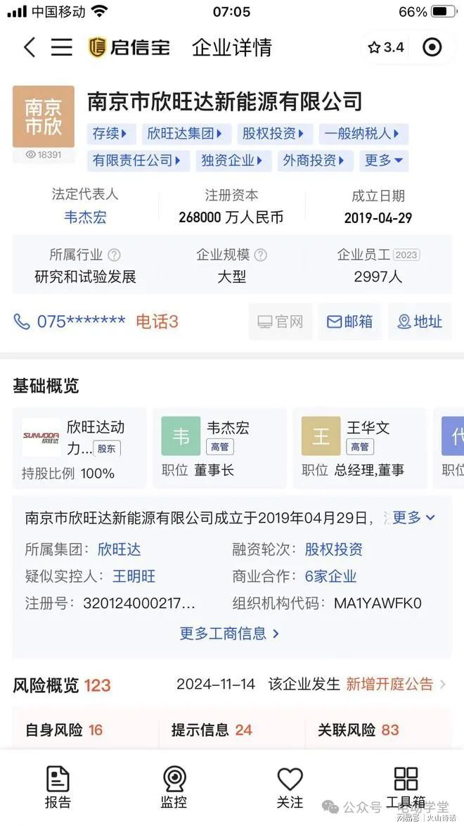 欣旺达南京新能源有限公司成立于2019年4月,注册资本高达26.8亿,是名副其实的大型企业。法定代表人是韦杰宏。