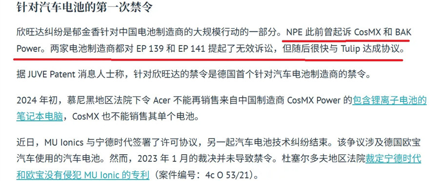 事实上,根据德国专利媒体Juve-Patent在今年6月份的一篇报道中,已经证实了在欣旺达之前,中国已经有两家锂电企业与Tulip达成了协议:珠海冠宇和比克电池。