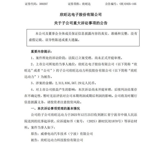欣旺达在公告中表示,此次诉讼尚未开庭审理,后续判决结果存在不确定性。