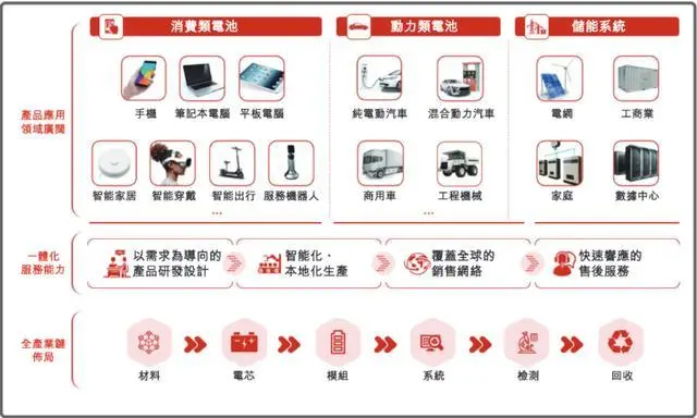 目前,欣旺达主要从事锂电池研发、设计、制造和销售,覆盖包括消费类电池、动力类电池及储能系统在内的多元化产品矩阵,能够向客户提供自电芯、模组到系统以及电池检测及回收的全面解决方案。
