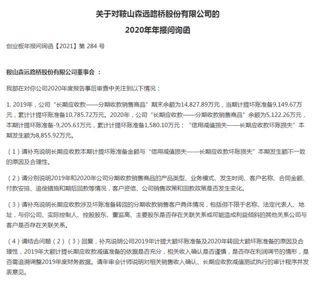 2021年5月19日,森远股份发布公告称,收到2020年年报的问询函。