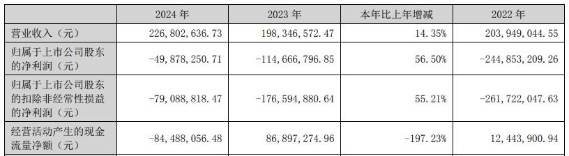 2021年至2024年,森远股份归属于上市公司股东的净利润分别为-1.83亿元、-2.45亿元、-1.15亿元、-4987.83万元;归属于上市公司股东的扣除非经常性损益的净利润分别为-1.98亿元、-2.62亿元、-1.77亿元、-7908.88万元。