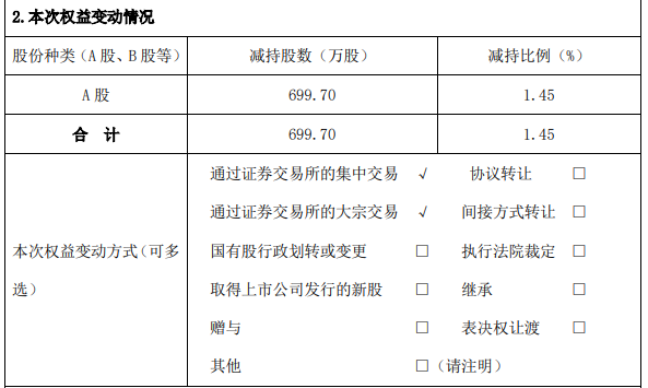 森远股份(300210.SZ)日前披露了关于持股5%以上股东减持股份超过1%的公告称,公司于近日接到股东郭松森减持公司股份的《告知函》,郭松森于2025年6月4日至2025年6月26日期间以集中竞价交易、大宗交易方式累计减持公司股份699.70万股,占公司总股本的1.45%。