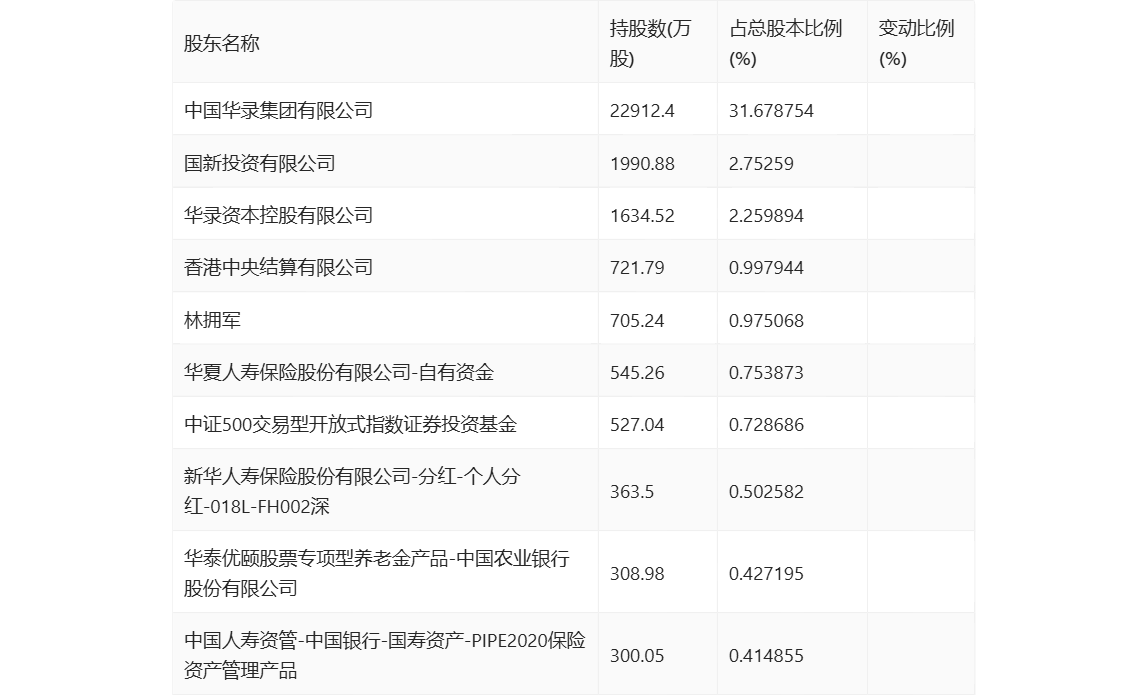 半年报显示,2024年上半年末公司十大流通股东中,新进股东为国新投资有限公司、华夏人寿保险股份有限公司-自有资金、新华人寿保险股份有限公司-分红-个人分红-018L-FH002深、华泰优颐股票专项型养老金产品-中国农业银行股份有限公司、中国人寿资管-中国银行-国寿资产-PIPE2020保险资产管理产品,取代了一季度末的廖芙秀、蔡健、财通基金-建设银行-中国人寿-中国人寿保险(集团)公司委托财通基金管理有限公司定增组合、陈文钧、邓涛。在具体持股比例上,中证500交易型开放式指数证券投资基金持股有所上升,香港中央结算有限公司持股有所下降。