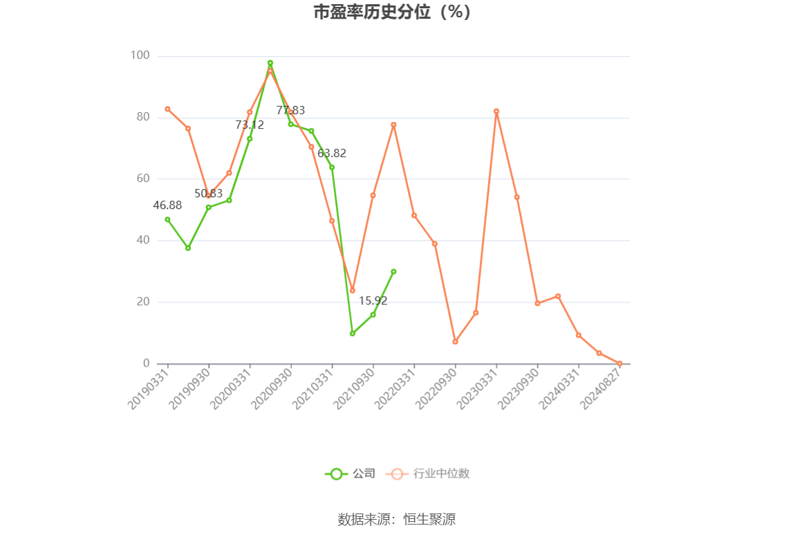 市盈率为负时,不显示当期分位数,会导致折线图中断。