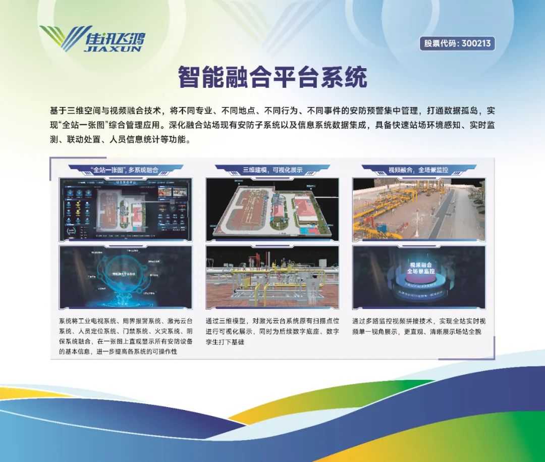在展示周界报警系统的同时,佳讯飞鸿还展出了基于三维空间与视频融合技术的智能融合平台系统。该系统通过整合工业电视系统、周界报警系统、激光云台系统、人员定位系统等多个安防子系统,实现了“全站一张图”的综合管理应用,能够直观呈现场站内所有安防设备的基本信息及运行状态,显著提升管理效率。