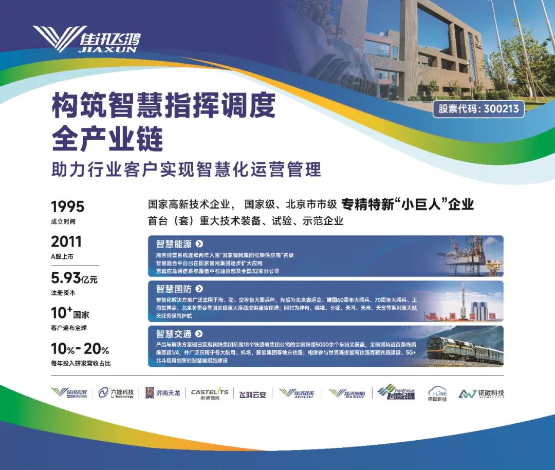 作为一家以技术创新为基因的高新科技企业,佳讯飞鸿以“大、智、移、云、物”新ICT技术为依托,致力于将人工智能、5G、云计算、大数据、物联网等赋能智慧铁路、智慧城轨、智慧民航、智慧能源、智慧海关及政企等行业客户,实现数字化转型、智慧化发展。并于2017年成立佳讯飞鸿智能科技研究院,每年将营业收入的10%-20%投入研发,探索新ICT技术与垂直行业的深度融合。