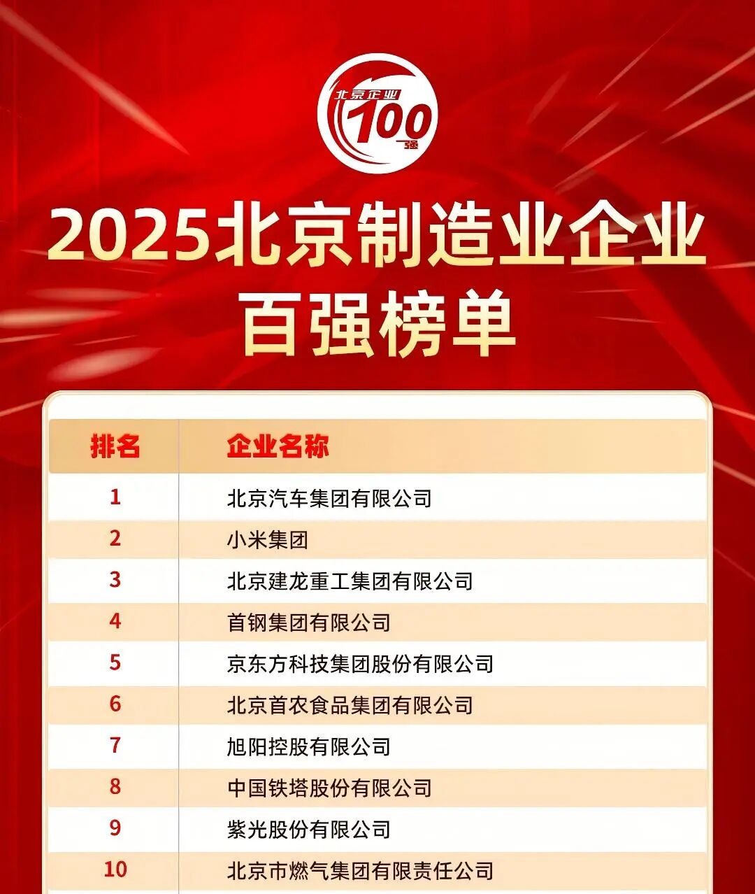 近日,由北京企业联合会、北京市企业家协会共同主办的2025北京百强企业发展论坛在京隆重举办。论坛以“链上百强,链动京津冀,巩固提升高质量发展动力源作用”为主题,现场发布了多项百强榜单。
