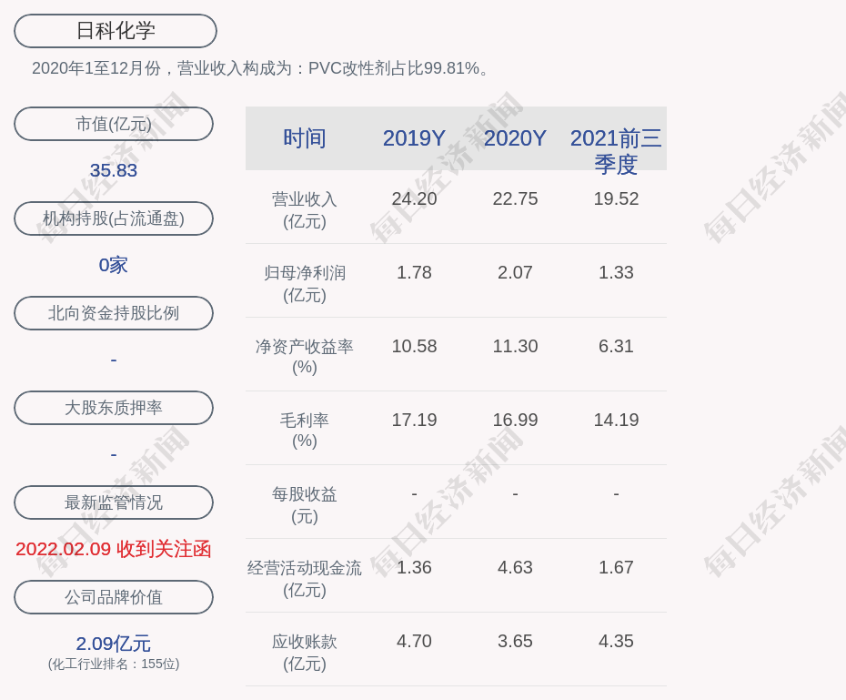 2020年1至12月份,日科化学的营业收入构成为:PVC改性剂占比99.81%。