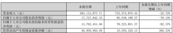此外,日科化学于同日披露的2023年一季度报告显示,第一季度,公司实现营业收入5.83亿元,同比减少20.72%;归属于上市公司股东的净利润1772.78万元,同比减少78.10%;归属于上市公司股东的扣除非经常性损益的净利润1379.25万元,同比减少82.37%;经营活动产生的现金流量净额4690.99万元,同比增长366.33%。
