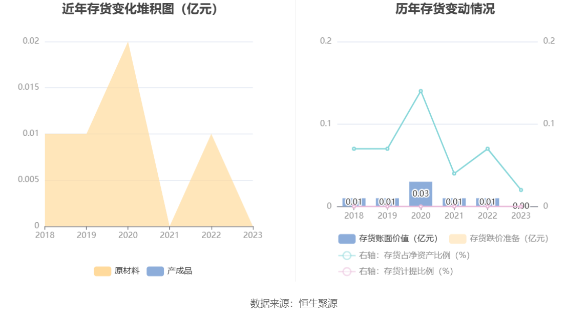 从存货变动来看,截至2023年年末,公司存货账面价值为36.62万元,占净资产的0.02%。根据财报,公司本期没有计提存货跌价准备。