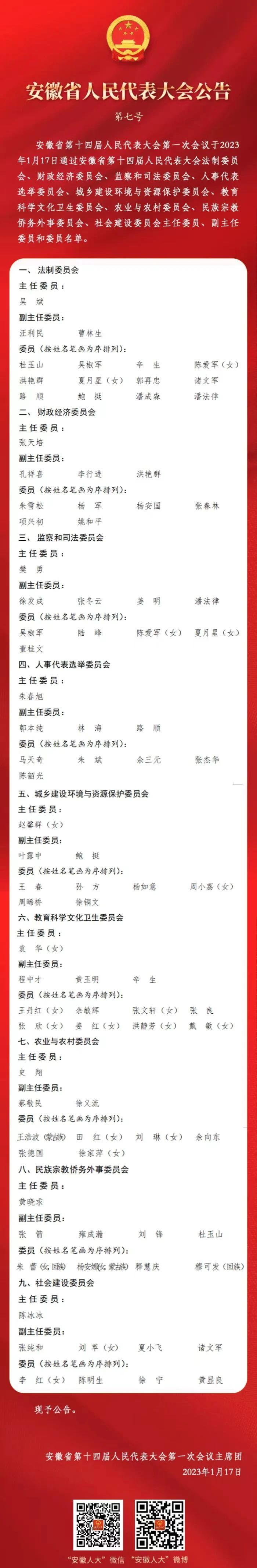 据悉,本届安徽省人大财经委员会主任、副主任、委员共10人,主要为管理及财政经济工作方面的领导和专家,具备良好的社会影响和专业素养。