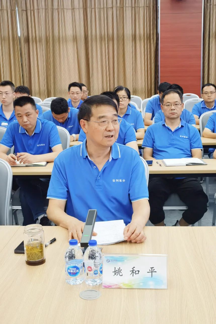 公司董事长、总经理姚和平代表公司欢迎新员工加入安利大家庭,为公司发展注入新的力量。姚和平董事长分别从我们是谁、我们为谁、我们要干什么、我们要到哪里去这四个方面作了重要讲话。姚和平董事长强调,安利是规模安利、创新安利、品牌安利、绿色安利、全球安利,公司规模领先、技术领先、行业地位领先,发展态势良好,发展动能强劲,竞争优势明显,我们走在大路上,我们的道路无限宽广,我们的前景无比辉煌。公司坚持把为员工创造机会的使命放在第一位,尊重、信赖员工,关心、关爱员工,发展依靠员工、发展为了员工。公司积极推行宽带多元的薪酬福利、优良的工作环境、员工素质提升、员工职业生涯发展规划、员工关爱“五大工程”,努力让员工成为知识技能、思想精神、物质财富三个方面的“小富翁”,让员工“脑袋”“口袋”同步增长,既给员工“钱途”又给员工“前途”,让员工既有“面子”又有“里子”,让员工有干头、有奔头、有盼头,不断增强员工的获得感、荣誉感、成就感、归属感和幸福感。公司坚持品牌引领、创新驱动、智能制造、智慧管理、绿色生态、社会和谐、员工幸福的发展路径。我们走在正道上,我们一定能走得更长更远,我们一定能做得更大更强,我们力争成为全球最优秀的聚氨酯复合材料企业的美好愿景一定能够实现!姚和平董事长希望学员们能够抓住机会、认真学习、开心工作、快乐生活,为了我们的共同的愿景、共同的目标、共同的事业,共同努力,奋力拼搏!