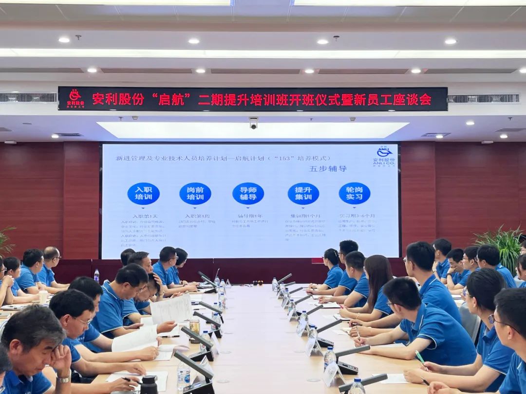 7月5日下午,安利股份(300218.SZ)“启航”二期提升培训班开班仪式暨新员工座谈会在公司行政楼11楼会议室举行。公司董事长、总经理姚和平,公司高管王义峰、黄万里、胡东卫、刘兵、姚克俭、胡家俊、李道鹏,相关部门负责人,培训讲师、新员工导师及新员工,共140余人参加活动。