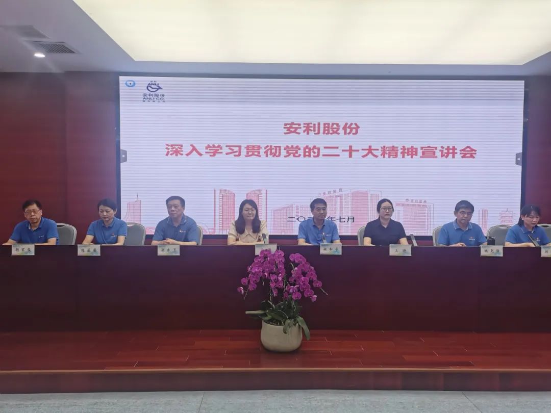 7月26日下午,安利股份(300218.SZ)在行政楼11楼会议室,组织开展深入学习贯彻党的二十大精神宣讲会。本次宣讲会特邀省委讲师团成员、二级调研员王敏作专题宣讲,肥西县总工会副主席王迪,安利股份党委书记、董事长、总经理姚和平,副总经理胡东卫、刘松霞、陈薇薇,新材料公司总经理姚克俭,监事会主席胡家俊,以及公司党员、预备党员、入党积极分子、中高层管理代表140余人参加宣讲会。