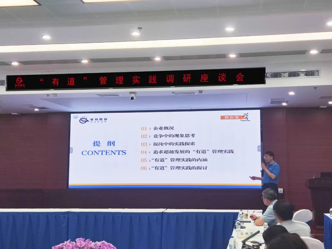 浙江工业大学管理学院学术副院长、管理学博士、工商管理博士后程聪,合肥工业大学等高校教授就跨国经营、员工管理、民企发展等问题,与姚和平董事长进行了热烈地座谈交流。参加分享报告的教授认为“姚和平董事长是一名有知识、有能力、有实践、有担当、有情怀、有格局的企业家,令人十分钦佩。安利股份作为一家优秀的安徽企业,作为案例值得深入地挖掘、研究和推广”。
