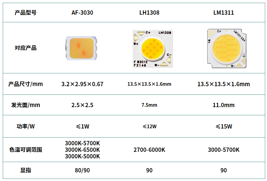 鸿利智汇智能调光照明产品丰富,功率覆盖0.5W~30W, 2700k-6500k色温全面覆盖,封装类型有TOP3030系列、COB LH1308、LM1311系列,可广泛应用于家居智能照明及商照领域。