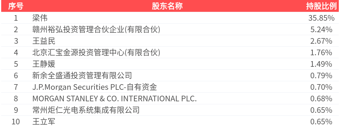 公司股东户数为2.10万户,前十大股东持股数量为7630.43万股,占总股本比例为50.47%,前十大股东持股情况如下: