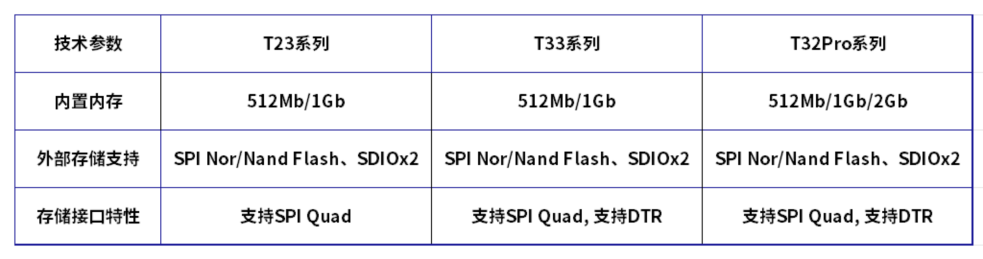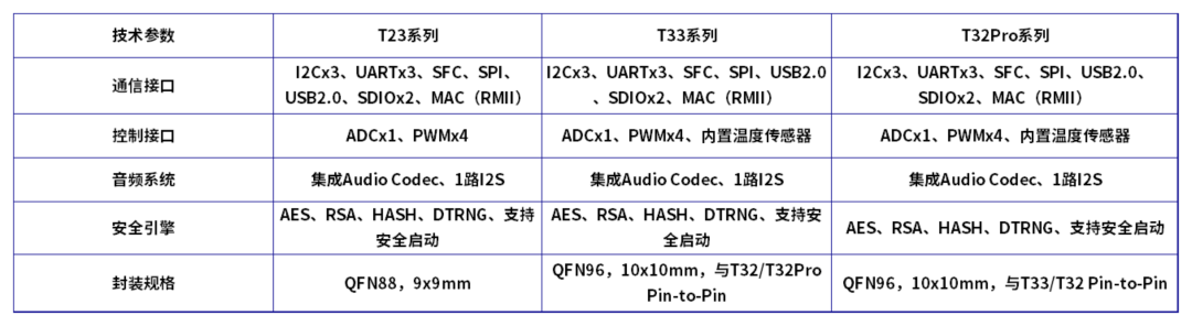 T33系列与T32Pro系列Pin-to-Pin兼容,T32Pro系列保持统一封装规格,便于跨型号硬件平台复用。