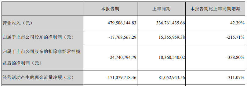 金力泰8月6日发布2021年半年度报告。报告显示,2021年上半年公司实现营业收入4.80亿元,同比增长42.39%;实现归属于上市公司股东的净利润为-1776.86万元,同比下降215.71%。