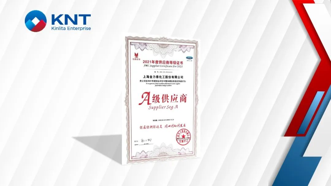 近日,金力泰凭借优异的2021年度综合评价整体绩效表现获得江铃汽车“A级供应商”荣誉。
