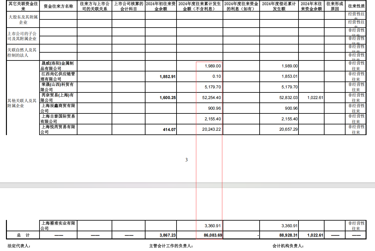 金力泰2024年度非经营性资金占用及其他关联资金往来情况汇总表 图片来源:公告截图